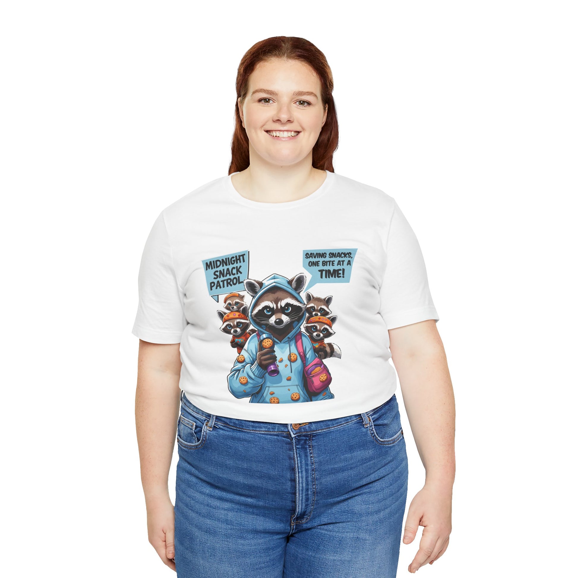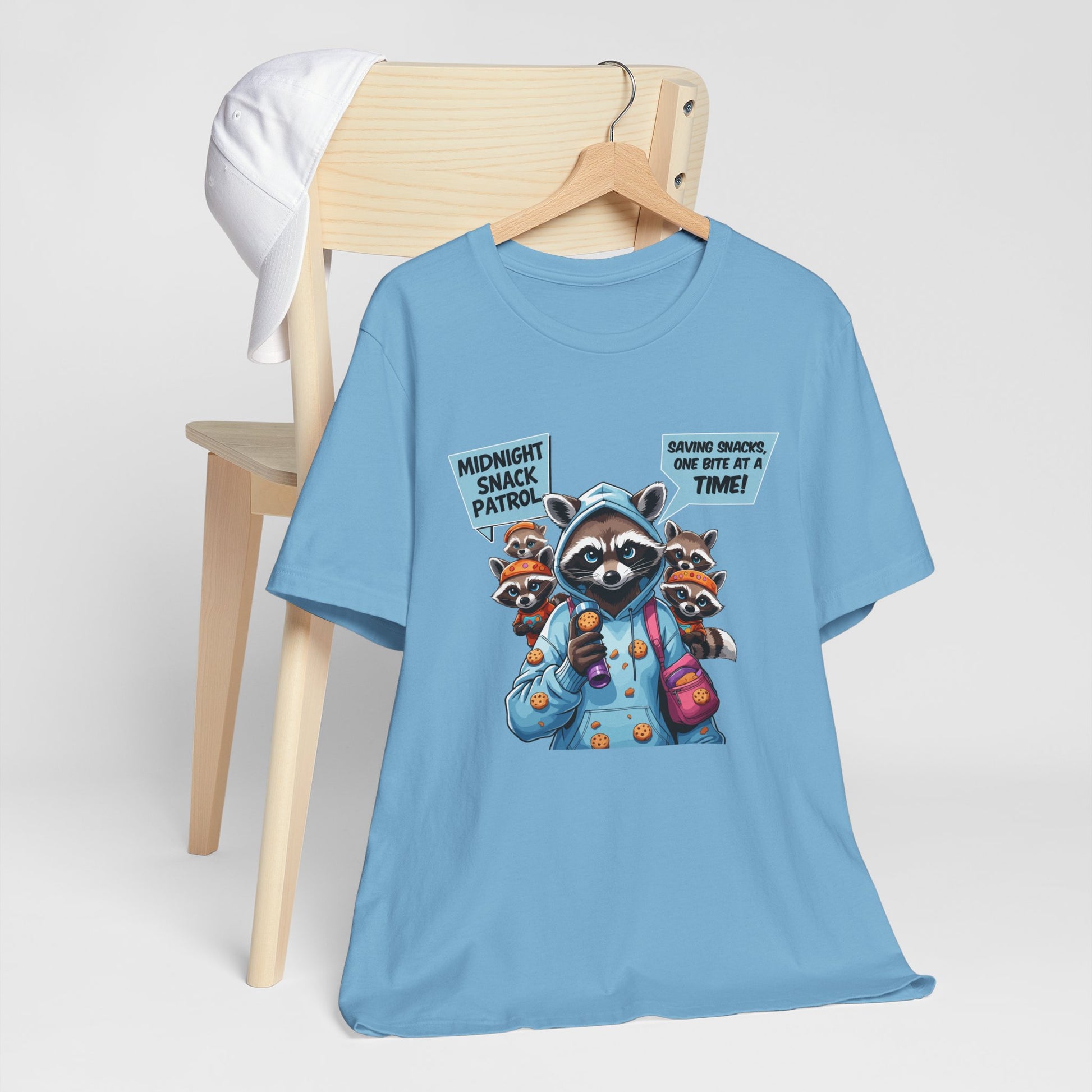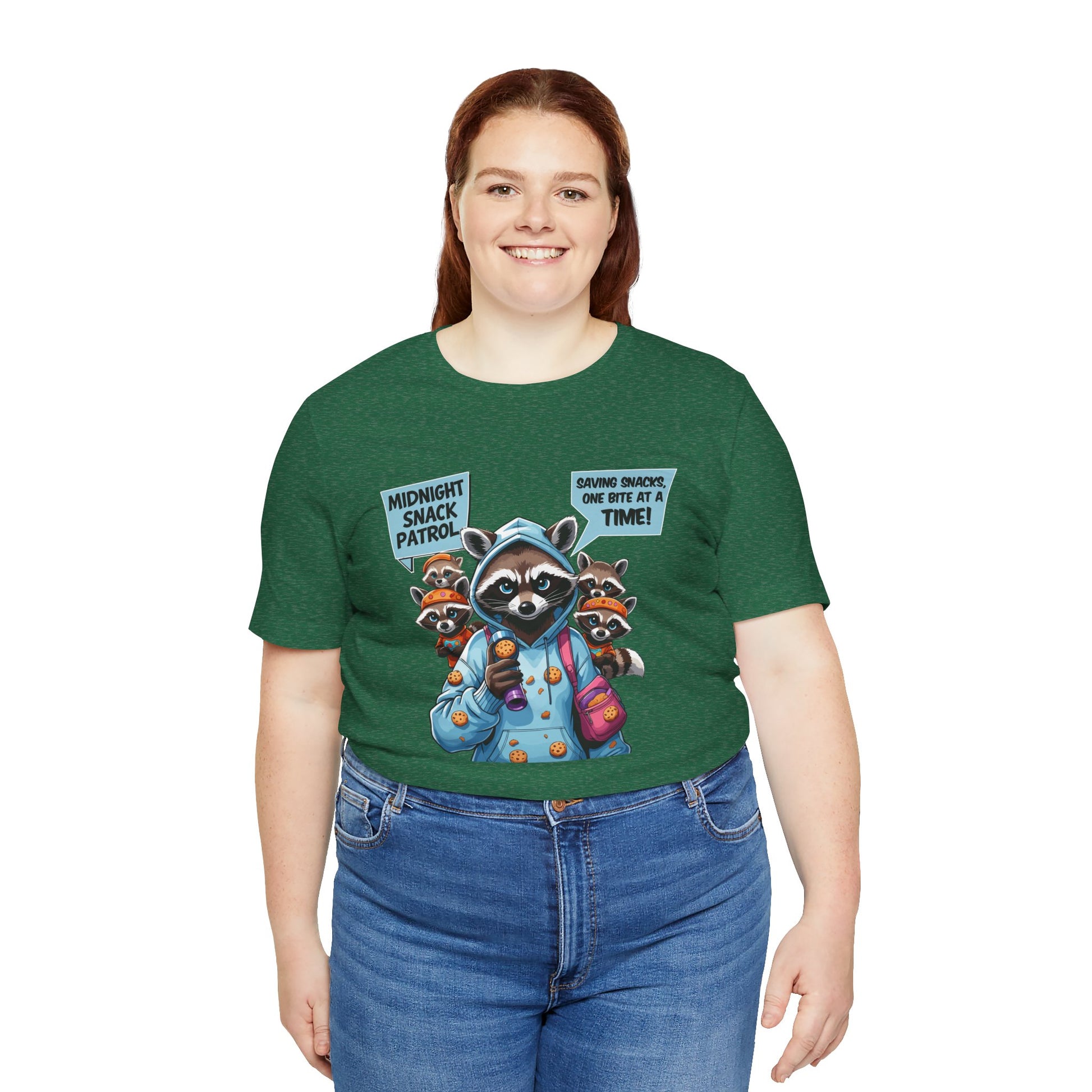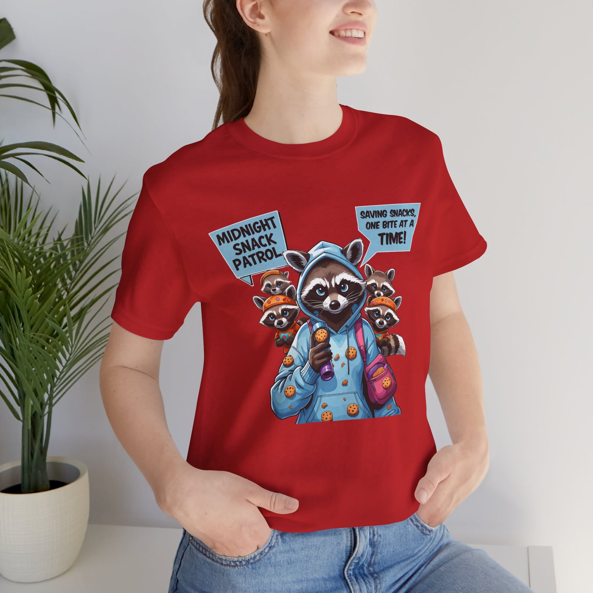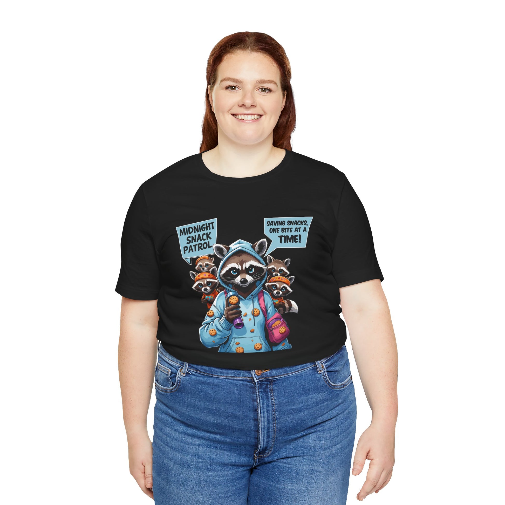 Raccoon Mom T-shirt, Snack Saviors Unite, Cozy Family Humor Adventure